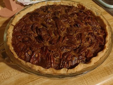 This recipe is pretty standard...except for the addition of my secret ingredient: American Honey: found in the liqueur section of your local liquor store. It is Wild Turkey Bourbon with Honey and its amazing. Think of sore throats with hot toddies! Well, maybe we shouldn't think about sore throats...instead, think of a super cold night and a shot of this goes a long way! But I digress: here is the recipe to fill a standard pie crust: mix together 3 beaten eggs, 3/4 cup light brown sugar, 1/3 cup of melted butter, 1 cup dark corn syrup (Karo), 2 teaspoons vanilla extract, and a dash of salt. Next, use a whisk and add 1 tablespoon of cornstarch. Now, add 2 tablespoons of the American Honey liqueur (or just regular bourbon or brandy). Finally, fold in 1 1/2 to 2 cups of pecan halves. Now, I suggest going to a place like Whole Foods that has a bulk section and select the giant pecan halves. I like them big and very fresh. Pour this into the pie crust and bake 50 minutes at 350 degrees. Your family will worship you. Whipped cream optional.